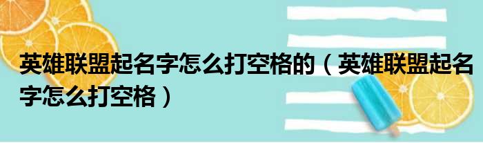 英雄联盟起名字怎么打空格的(英雄联盟起名字怎么打空格)