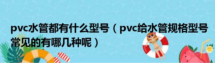 导读 大家好,今天小六子来为大家解答以下的问题,关于pvc水管都有什么型号,pvc给水管规格型号常见的有哪几种呢这个很多人还不知道,现在让我们