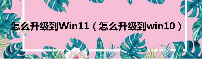 怎么升级到Win11(怎么升级到win10)