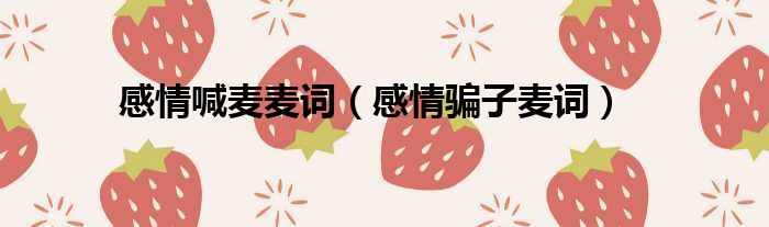 大家好,今天小六子来为大家解答以下的问题,关于感情喊麦麦词,感情骗子麦词这个很多人还不知道,现在让我们一起来看看吧!