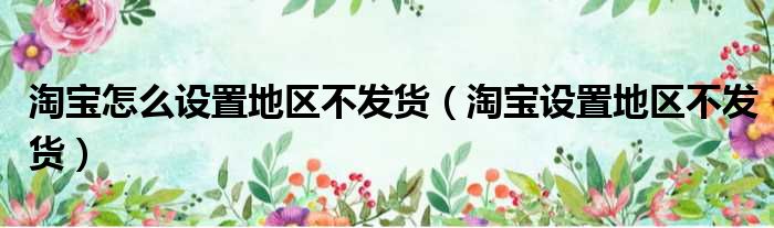 淘宝怎么设置地区不发货(淘宝设置地区不发货)