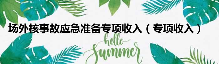 导读 大家好,今天小六子来为大家解答以下的问题,关于场外核事故应急准备专项收入,专项收入这个很多人还不知道,现在让我们一起来看看吧!1、专