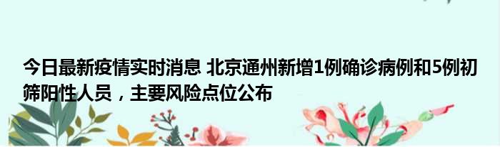 今日最新疫情实时消息 北京通州新增1例确诊病例和5例初筛阳性人员,主要风险点位公布