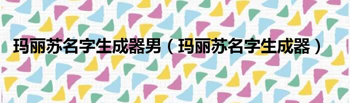 玛丽苏名字生成器男(玛丽苏名字生成器)
