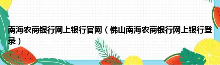 导读 大家好,今天小六子来为大家解答以下的问题,关于南海农商银行网上银行官网,佛山南海农商银行网上银行登录这个很多人还不知道,现在让我们