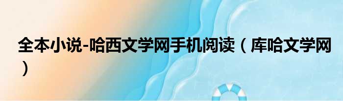 全本小说-哈西文学网手机阅读(库哈文学网)