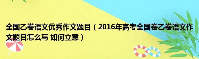 全国乙卷语文优秀作文题目(2016年高考全国卷乙卷语文作文题目怎么写 如何立意)