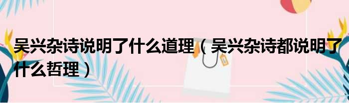 吴兴杂诗说明了什么道理(吴兴杂诗都说明了什么哲理)