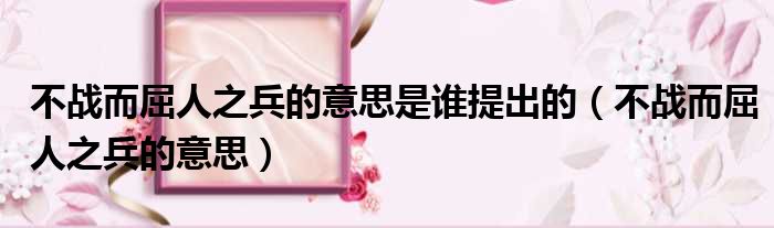 不战而屈人之兵的意思是谁提出的(不战而屈人之兵的意思)