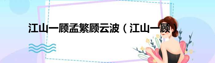 大家好,今天小六子来为大家解答以下的问题,关于江山一顾孟繁顾云波,江山一顾这个很多人还不知道,现在让我们一起来看看吧!