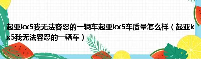 起亚kx5我无法容忍的一辆车起亚kx5车质量怎么样(起亚kx5我无法容忍的一辆车)