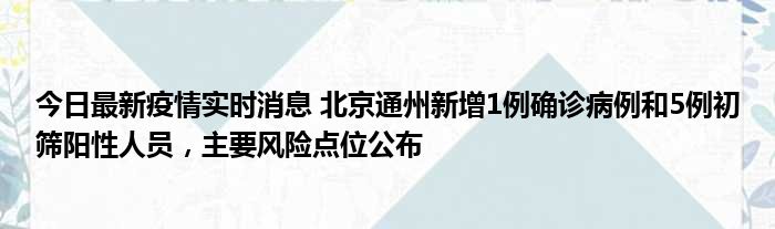 今日最新疫情实时消息 北京通州新增1例确诊病例和5例初筛阳性人员,主要风险点位公布
