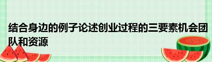 结合身边的例子论述创业过程的三要素机会团队和资源