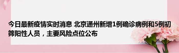 今日最新疫情实时消息 北京通州新增1例确诊病例和5例初筛阳性人员,主要风险点位公布