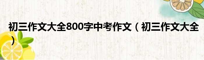 大家好,今天小六子来为大家解答以下的问题,关于初三作文大全800字中考作文,初三作文大全这个很多人还不知道,现在让我们一起来看看吧!