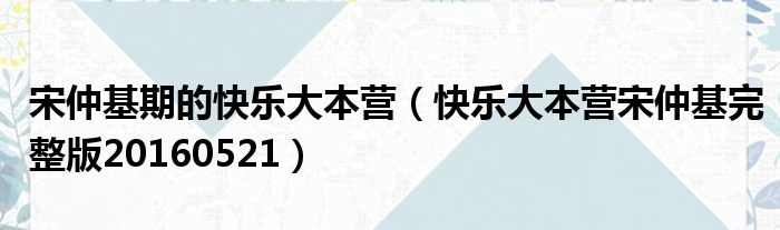 导读 大家好,今天小六子来为大家解答以下的问题,关于宋仲基期的快乐大本营,快乐大本营宋仲基完整版20160521这个很多人还不知道,现在让我们一