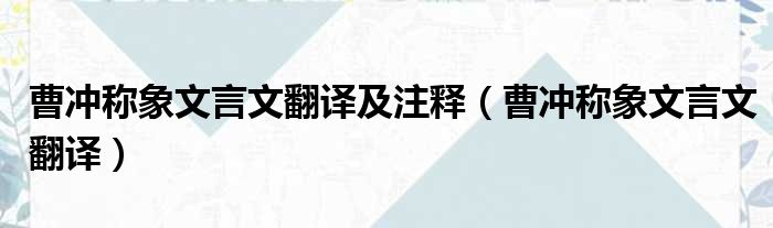 曹冲称象文言文翻译及注释(曹冲称象文言文翻译)