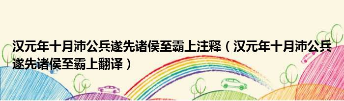 汉元年十月沛公兵遂先诸侯至霸上注释(汉元年十月沛公兵遂先诸侯至霸上翻译)