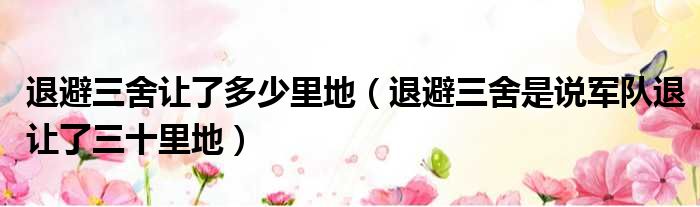导读 大家好,今天小六子来为大家解答以下的问题,关于退避三舍让了多少里地,退避三舍是说军队退让了三十里地这个很多人还不知道,现在让我们一