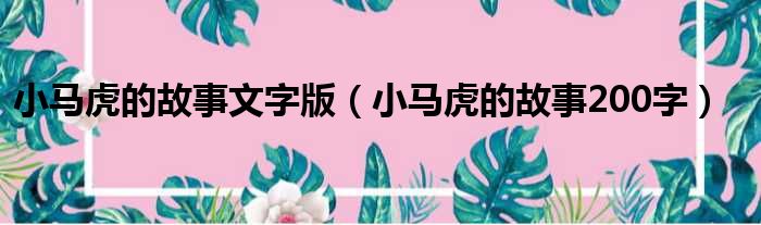 导读 大家好,今天小六子来为大家解答以下的问题,关于小马虎的故事文字版,小马虎的故事200字这个很多人还不知道,现在让我们一起来看看吧!1、