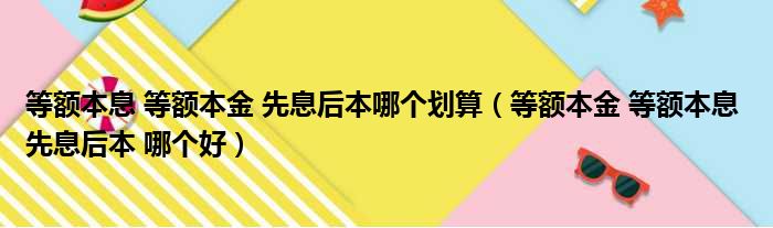 等额本息 等额本金 先息后本哪个划算(等额本金 等额本息 先息后本 哪个好)