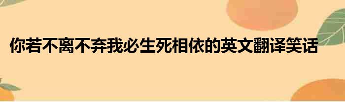 大家好,今天小六子来为大家解答以下的问题,关于你若不离不弃我必生死相依的英文翻译笑话这个很多人还不知道,现在让我们一起来看看吧!