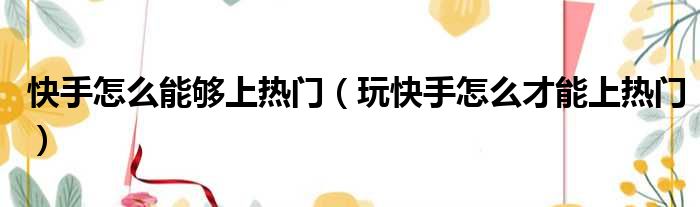快手怎么能够上热门(玩快手怎么才能上热门)