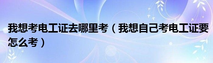 我想考电工证去哪里考(我想自己考电工证要怎么考)