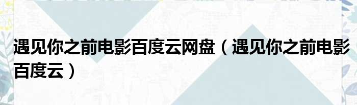 遇见你之前电影百度云网盘(遇见你之前电影百度云)