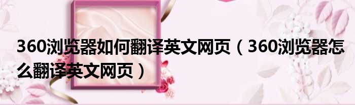 360浏览器如何翻译英文网页(360浏览器怎么翻译英文网页)