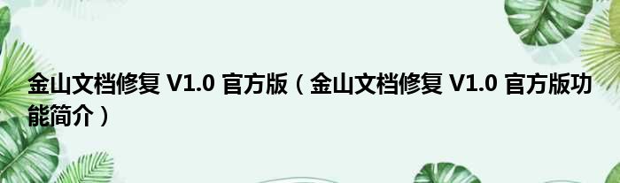 金山文档修复 V1.0 官方版(金山文档修复 V1.0 官方版功能简介)