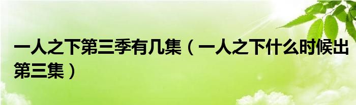 导读 大家好,今天小六子来为大家解答以下的问题,关于一人之下第三季有几集,一人之下什么时候出第三集这个很多人还不知道,现在让我们一起来看