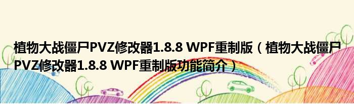 植物大战僵尸PVZ修改器1.8.8 WPF重制版(植物大战僵尸PVZ修改器1.8.8 WPF重制版功能简介)
