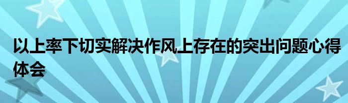 导读 大家好,今天小六子来为大家解答以下的问题,关于以上率下切实解决作风上存在的突出问题心得体会这个很多人还不知道,现在让我们一起来看看