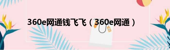 大家好,今天小六子来为大家解答以下的问题,关于360e网通钱飞飞,360e网通这个很多人还不知道,现在让我们一起来看看吧!