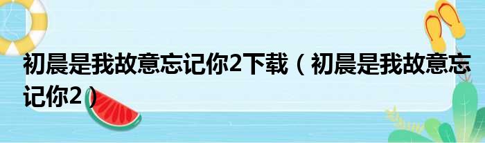 导读 大家好,今天小六子来为大家解答以下的问题,关于初晨是我故意忘记你2下载,初晨是我故意忘记你2这个很多人还不知道,现在让我们一起来看看
