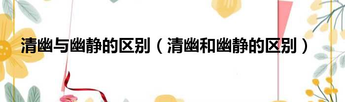 导读 大家好,今天小六子来为大家解答以下的问题,关于清幽与幽静的区别,清幽和幽静的区别这个很多人还不知道,现在让我们一起来看看吧!1、区别