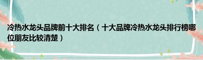 导读 大家好,今天小六子来为大家解答以下的问题,关于冷热水龙头品牌前十大排名,十大品牌冷热水龙头排行榜哪位朋友比较清楚这个很多人还不知道