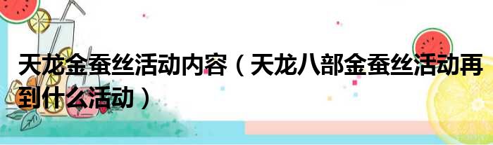 天龙金蚕丝活动内容(天龙八部金蚕丝活动再到什么活动)