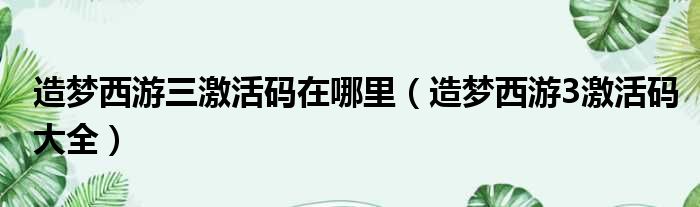 导读 大家好,今天小六子来为大家解答以下的问题,关于造梦西游三激活码在哪里,造梦西游3激活码大全这个很多人还不知道,现在让我们一起来看看吧