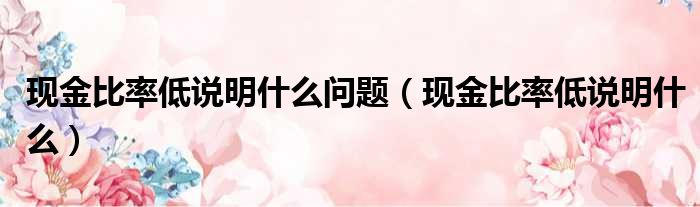 导读 大家好,今天小六子来为大家解答以下的问题,关于现金比率低说明什么问题,现金比率低说明什么这个很多人还不知道,现在让我们一起来看看吧