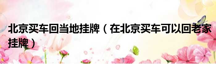 北京买车回当地挂牌(在北京买车可以回老家挂牌)