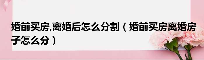 导读 大家好,今天小六子来为大家解答以下的问题,关于婚前买房,离婚后怎么分割,婚前买房离婚房子怎么分这个很多人还不知道,现在让我们一起来看