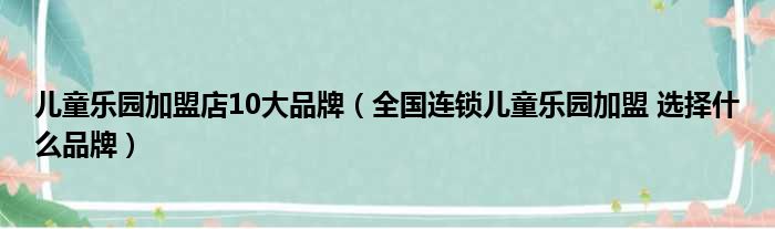 儿童乐园加盟店10大品牌(全国连锁儿童乐园加盟 选择什么品牌)