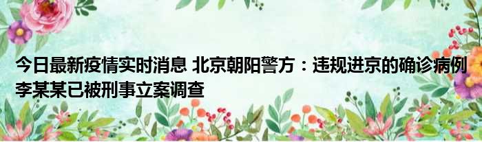 今日最新疫情实时消息 北京朝阳警方:违规进京的确诊病例李某某已被刑事立案调查