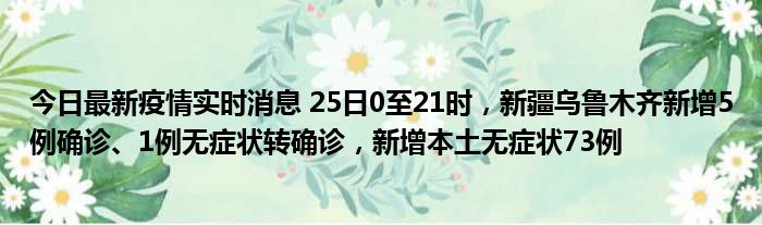 今日最新疫情实时消息 25日0至21时,新疆乌鲁木齐新增5例确诊、1例无症状转确诊,新增本土无症状73例