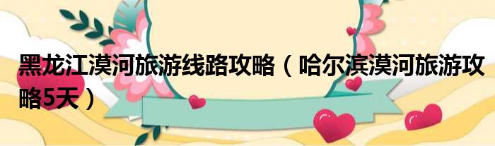 导读 大家好,今天小六子来为大家解答以下的问题,关于黑龙江漠河旅游线路攻略,哈尔滨漠河旅游攻略5天这个很多人还不知道,现在让我们一起来看看