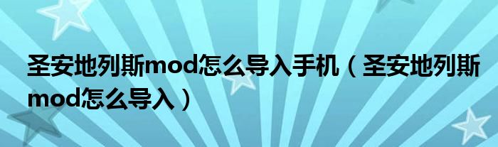 圣安地列斯mod怎么导入手机(圣安地列斯mod怎么导入)