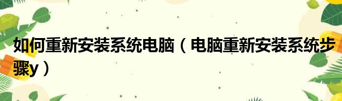 如何重新安装系统电脑(电脑重新安装系统步骤y)