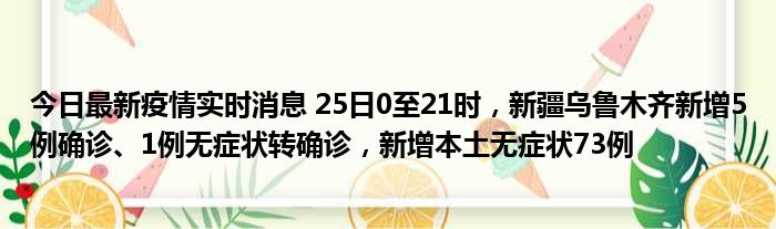 今日最新疫情实时消息 25日0至21时,新疆乌鲁木齐新增5例确诊、1例无症状转确诊,新增本土无症状73例